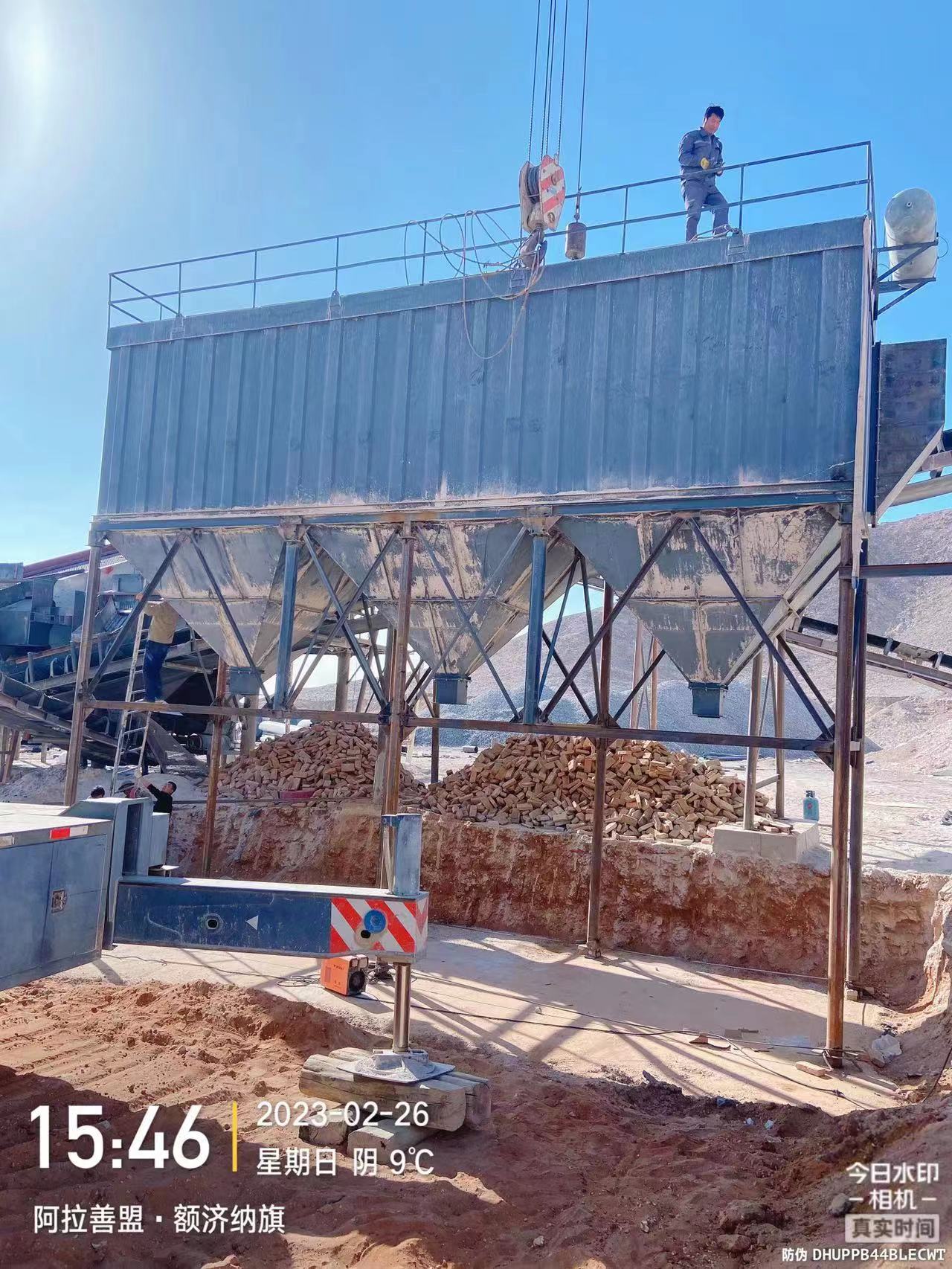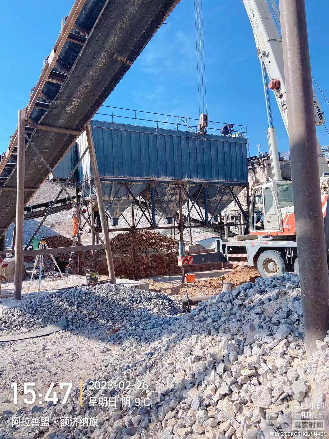 甘肃酒泉航天发射基地附近石场除尘设备和选粉设备安装中,确保除尘达到环保要求,做精品机制砂,保证石场正常生产